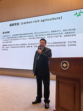 内蒙古自治区政协常委、农牧委副主任,农牧厅原副厅长、一级巡视员赵永华在“产业振兴的关键技术”发言中,介绍了二氧化碳在农业上的作用、富碳农业的基本原理与优势,提出推动农业绿色转型、助力产业振兴的具体思路。