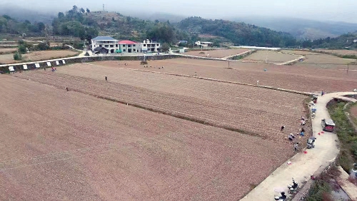 贵州省铜仁市石阡县聚凤乡廖家屯村的种植户们,在大豆收获后的田块上种植大蒜