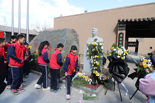 是日上午九时,各单位代表和英华学校的部分师生在多松年烈士的故居开展祭扫活动。