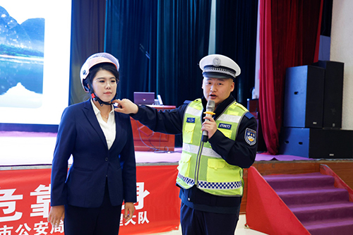 活动现场,大队宣传民警辅警率先围绕“一盔一带”安全守护行动开展专题讲座,通过播放本地真实交通事故案例视频,直观剖析不规范佩戴安全头盔、不系安全带、酒驾醉驾、严禁三轮车违法载人等交通违法行为带来的严重安全隐患。民警现场手把手教学,细致讲解安全头盔正确佩戴方式与关键注意事项,还通过趣味互动问答的形式,加深参会人员对交通安全知识的记忆,充分调动大家的学习积极性。