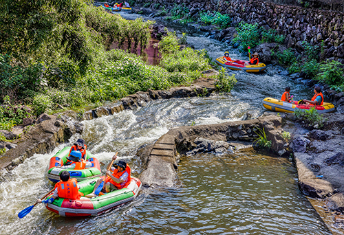 艺术赋能乡村,旅游富裕乡村。萧王庙街道以滕头5A级景区为核心,构建起“联动古村、桃园、业态”的“一核多极”农文旅布局:滕头村的德宝乐园,找准亲子互动、户外探险的风口,2024年接待亲子游客95万人次,直接带动旅游收入1200余万元;棠岙村,西江漂流项目带动沿线十余家农家乐,棠云栖江•共享小院推出手工艺品制作体验项目,文旅业态的兴起让棠岙村持续出圈,活动“流量”正逐步转化为全民增收的“增量”。正月的“青云元宵晚会”,舞龙灯、唱越剧,吸引游客逾120万人次,本地特色农产品抢购一空,2天创造出100余万元旅游综合收入。三月的“桃花季”,40余万人次游客寻花而来。桃园的共富市集,带动500余人就业,80余个摊位既有售卖村民自制的桃胶、糕点,也有非遗传承人带来的竹编、木雕,综合收入达1000万元。2024年,萧王庙街道区域旅游综合收入近1.4亿元。