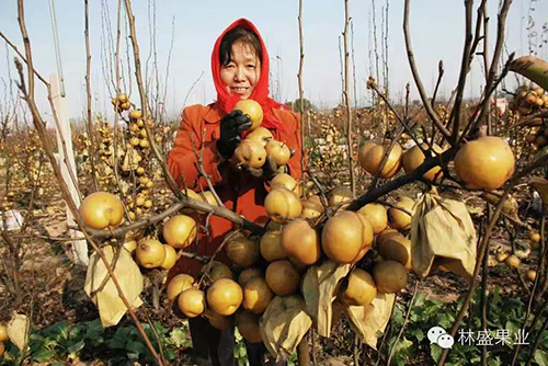据毛其芳介绍,冬梨挂果早、见效快、效益高,当年栽植当年便可开花结果,若管理到位,两年生的树每亩产量可达到1000-3000斤;三年生的树每亩产量可达到4000-6000斤;四年生的树每亩产量可达到8000-15000斤,市场统收10元/公斤,零售价可达20元/公斤。果型大、果质优,一般果重500-800克,大果可达1800-2000克以上。耐存放、耐低温、不腐烂,成熟果采摘后,在常温下可自然存放6-8个月而不变色不变味,极其适合反季节销售和长途运输。管理简单、适应性强。该树属矮化密植型,每亩可栽植170棵,行距3米,株距1.5米,树高1-2.5米,没有大小年,山坡、丘陵、低洼地、沙土地、盐碱地都可种植,经济效益是其他品种无法比拟的。