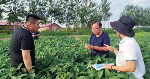 黑龙江省虎林市农技专家在开展大豆田间技术指导